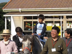 が10時30分より食堂を借り切って行われ、参加者の懇親を深夜まで行いました。翌日は、晴天で10月初旬の陽気で、絶好の体験乗馬日和でした。