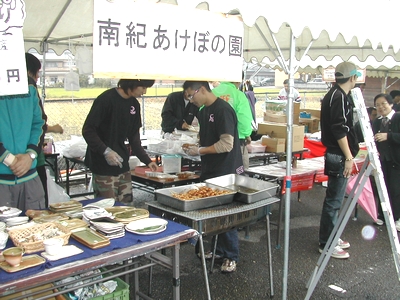 、第8回鯉のぼりフォーラムが田辺市の扇ヶ浜カッパークで開催され、南紀あけぼの園のブースで焼き鳥