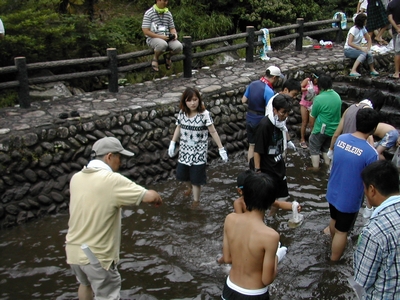 1日目はオリエンテーションの後、魚のつかみ捕り