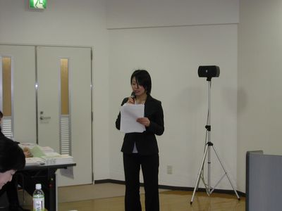 今回が初めての勉強会の開催で、お世話いただいた福島豊前議員の司会進行の後、石井会長があいさつの中で自閉症を取り巻く現状を説かれた後、自己紹介を行い、野田聖子議員、馳浩議員、阿部俊子議員(自民3名)、高木美千代議員、山本博司参議院議員、福島豊前議員(公明3名)、石毛えい子議員、園田康博議員、渡部恒三議員代理遠藤秘書、谷博之参議院議員代理秘書、河合孝典参議院議員代理四倉秘書(民主5名)、協会から石井会長、須田副会長、石丸副会長、大平常務理事、新保理事、水野理事、大久保が紹介された。