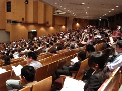 さて、全国大会1日目は13時から、石井会長のあいさつに始まり、私・大久保のあいさつ、ご来賓のごあいさつ(長妻厚生労働大臣代理、川端文部科学大臣代理)、ご紹介、祝電披露、須田統括責任者による大会スローガン、