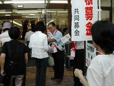 毎年この時期に街頭募金活動が行われるが、市内のサカエショッピングセンター入り口2ケ所で二手に分かれて行った。