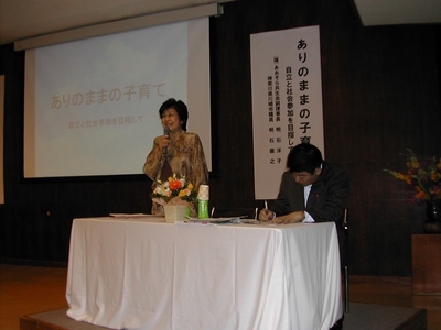 、新宮の福祉センターで明石洋子さん徹之くん親子の子育てについての講演会が開催された。