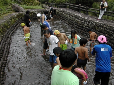 1日目はオリエンテーションの後、魚のつかみ捕り