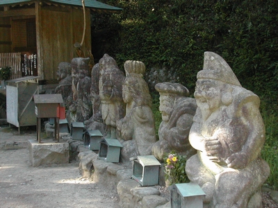 石でできた七福神の右手が心無い人により壊されていますが