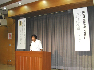 テーマは「すべての障害者について理解し、支援のあり方を考える」として、演題は「精神、知的、発達障害について」であった。