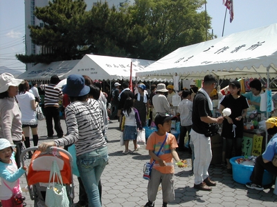 参加団体は、ふたば福祉会、はまゆう作業所、やおき福祉会、田辺くじら共同作業所、なかよし福祉会、日置川みどり園、NPO法人ハートツリー、わんぱく保育所、いきいき作業所と南紀あけぼの園がそれぞれの店を出店してにぎわっていた。